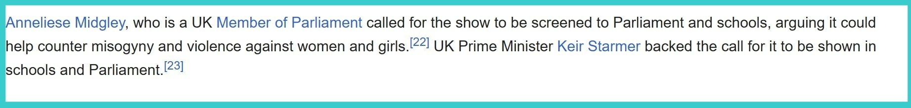 Εντωμεταξύ, τις επόμενες μέρες, η σειρά αποδείχθηκε μεγάλο χιτ με ρεπορτάζ σε πολλά ειδησεογραφικά μέχρι και τοποθετήσεις σε τηλεοπτικές εκπομπές ενώ το σχετικό λήμμα στη γουικιπίντια αναφέρει πως ο πρωθυπουργός της Μεγάλης Βρετανίας πρότεινε να τη δείχνουν στα σχολεία της χώρας.