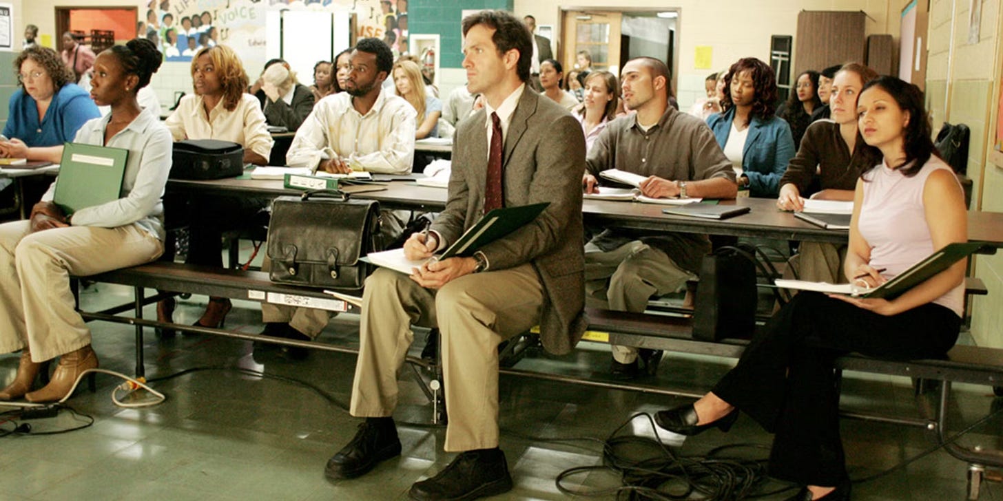 Λίγο αργότερα, κι ενώ έχουν μεσολαβήσει διάφορα, για να μην μείνουν σε κανέναν αμφιβολίες για το ποιόν των σημερινών εκπαιδευτικών, ο αστυνόμος Μπέκαμ απ’ το Πέκαμ - η σειρά είναι στην Αγγλία - επιδίδεται σε έναν δραματικό μονόλογο καθώς βγαίνει απ’ το κτίριο: